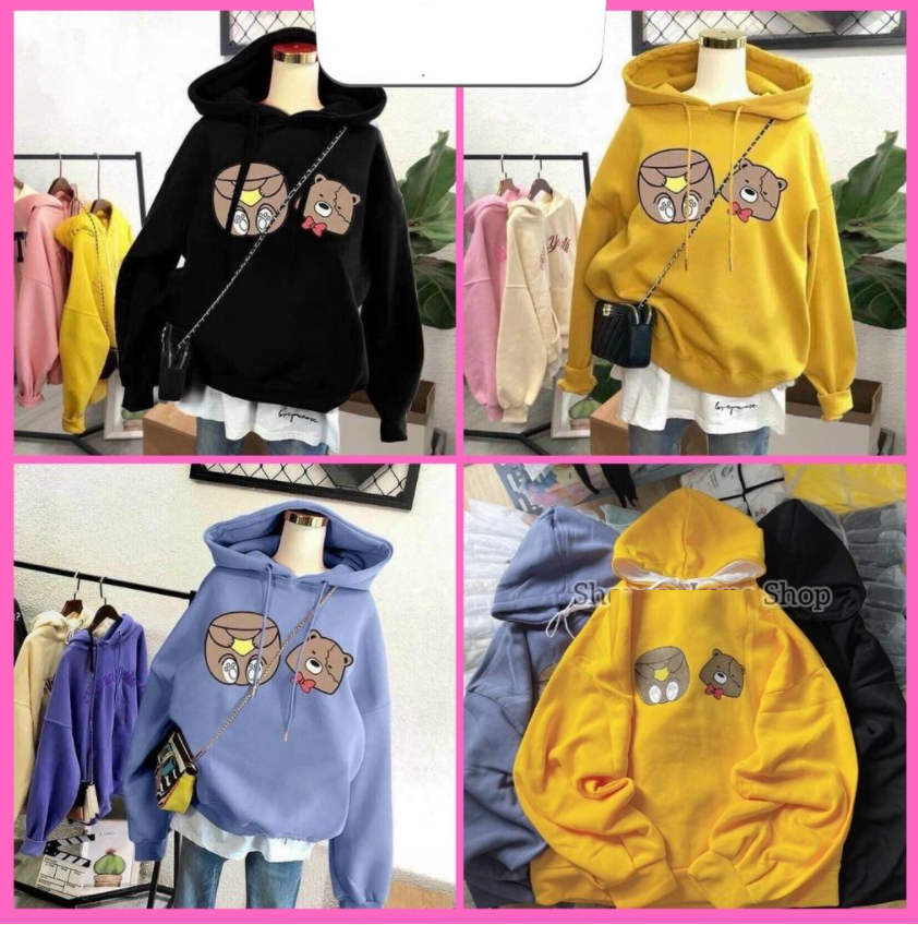 Áo khoác nỉ bông thêu gấu dày dặn form rộng quảng châu áo khoác chống nắng thêu GẤU BIB00 - TOPTEEN 3423