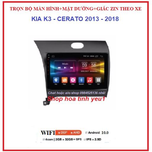 Combo Màn Hình DVD Android và mặt dưỡng Theo Xe KIA FORTE đời 2009-2012 ĐIỀU HÒA CƠ, màn dùng sim 4G hoặc kết nối WIFI