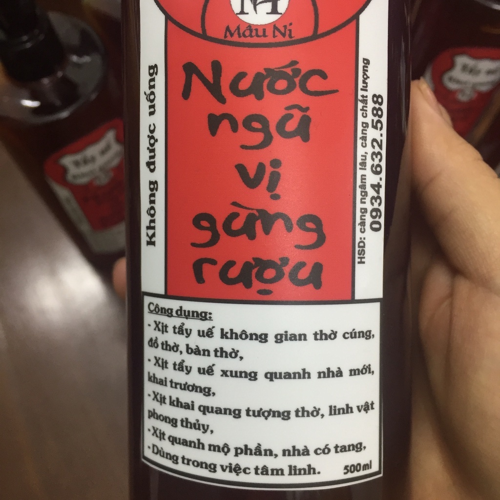 NƯỚC NGŨ VỊ NGÂM GỪNG dùng để tẩy uế đồ thờ - MÂU NI - chuẩn tâm linh [bao sái, tắm vong, bồi hoàn long mạch ] - Không cần phải đun cả tiếng đồng hồ, rất tiện dụng - Dùng trong việc tâm linh, tẩy uế ban thờ - Nước ngũ vị chuẩn tâm linh, không sử dụng bất kể hương liệu hay thức bảo quản. (VỎ CHAI ĐỰNG CÓ THỂ NHIỀU MẪU, chất lượng, dung tích không đổi) CÔNG DỤNG: Dùng cho việc tâm linh, tẩy uế đồ thờ cúng, tắm tượng, động thổ, mừng tân gia, trừ tà, tắm vong 49 ngày, tẩy uế phần mộ ngày rằm tháng 7, sang cát ,... Tắm cho người quá cố trước khi thụ quan, chuyển mộ cải táng, hàn long mạch ... CÁCH DÙNG: - Đổ 1 lượng vừa đủ, Pha thêm nước sạch làm loãng THÀNH PHẦN: Quế, Hồi, Đinh Hương, Gỗ Vang, Bạch Đàn (Đã được hấp dầu nhiều giờ) Gừng tươi Nước nếp thơm Dung tích: 350ml->450ml ƯU ĐIỂM: -> Loại lọ có ngũ vị: Dùng hết có thể đổ thêm nước nếp ngâm tiếp dùng cho lần sau -> Loại xịt: để phun tẩy uế không gian phòng thờ, xịt phun tẩy uế vòng quanh nhà (đặc biệt là về nhà mới, nhà có tang cực hiệu quả) MÂU NI là đơn vị sản xuất 0934.632.588 Tìm đại lý trên toàn quốc (cam kết CHẤT LƯỢNG UY TÍN, HÀNG THỜ CÚNG PHẢI CHUẨN TỰ TÂM)