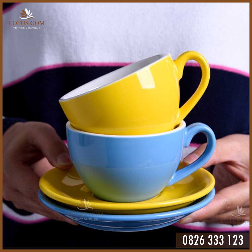 Tách Cafe Capuchino Kèm Đĩa - 220ml Dáng Lùn Nhiều Màu Gốm Sứ Cao Cấp