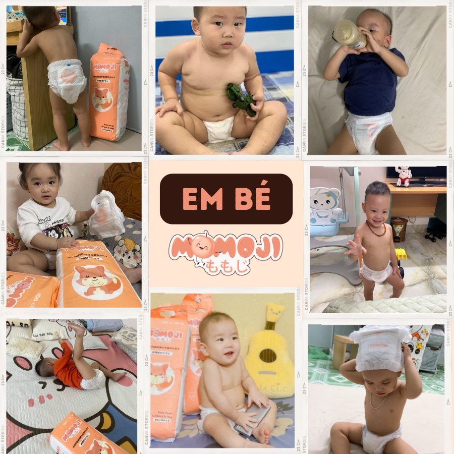 Dòng bỉm Momoji siêu mềm mới mang đến sự mềm mại, êm ái, trọng lượng nhẹ 1.8mm và siêu thấm hút X6 lần. Em bé của bạn sẽ luôn khô thoáng trong một thời gian dài, thoải mái với vòng chun lưng êm ái, và siêu nhẹ nhàng, nâng niu làn da bé 1. Đặc điểm nổi bật - Với công nghệ thoát ẩm tiên tiến nhất, khả năng thoáng khí được chứng minh lâm sàng giúp NGỪA HĂM TÃ, nhờ công nghệ vải không dệt Hotwind hình lá đan với hàng vạn lỗ thoát khí, khô thoáng, thoát ẩm 100% giúp không khí lưu thông dễ dàng, cho da bé luôn được khô thoáng dài lâu, với tiêu chí của Momoji – VÌ MÔNG CON CẦN THỞ - Công nghệ hạt SAP siêu thấm hút mới nhất – thấm hút nhanh, giúp giữ chặt chất lỏng, CHỐNG THẤM NGƯỢC - cho bề mặt tã luôn luôn khô thoáng. - Đai chun bong bóng kiểu mới, bo chun đùi mềm mại co giãn theo tỉ lệ cơ thể ở 4 vùng bụng-hông-mông-đùi, ôm vừa vặn thân bé nhờ Hệ thun 4 TÁC ĐỘNG chống hằn. - Đáy bo chun chống xệ, chống xô lệch, cho bé thoải mái vận động. - Vạch báo nước tiểu để dễ nhận biết thời điểm cần để thay tã cho bé - Miếng dán cuốn tã giúp gói gọn sau khi dùng và giữ vệ sinh 2. Hướng dẫn chọn size tã cho bé: - Tã dán: Size NB: 64 miếng cho bé dưới 5kg Size S: 60 miếng cho bé từ 5-8kg - Tã quần Size M: 56 miếng cho bé từ 6-12 kg Size L: 54 miếng cho bé từ 9 -14 kg. Size XL: 50 miếng cho bé từ 12 -17 kg. Size XXL: 48 miếng cho bé trên 15 kg. 3. Lưu ý khi sử dụng - Thay tã sau khoảng thời gian đều đặn, và thay ngay khi bé tiêu bẩn - Ngừng sử dụng và hỏi ý kiến bác si nếu xuất hiện bất thường trên da 4. Hướng dẫn bảo quản Bảo quản nơi khô ráo, thoáng mát, tránh ánh nắng mặt trời trực tiếp, xa tầm tay trẻ em 5. Hạn sử dụng: 3 năm từ ngày SX. 6. Xuất sứ: Bỉm momoji là dòng bỉm của thương hiệu bỉm Việt cao cấp, được sản xuất bằng công nghệ và dây chuyền tiên tiến được giám sát chặt chẽ từ Nhật Bản. --------------------------------------------------- CÔNG TY TNHH THƯƠNG MẠI TỔNG HỢP MOMO VIỆT NAM 🏢 Head office: B42, dãy BT1A khu đô thị Mỹ Đình 2, Nam Từ Liêm, Hà Nội. 📞 Hotline: 0898 797 393 🌎 Website: www.momovietnam.com 🎥 Group: https://www.facebook.com/groups/momojibaby #ta #bim #bimquan #bimdan #sieumong #sieuthoang #chongtran #thamhut #bimchongtran #taquan #tadan #momoji #bimmomoji #tabimthuonghieuviet #tabimsosinh #tabimgiatot #tabimdansosinh