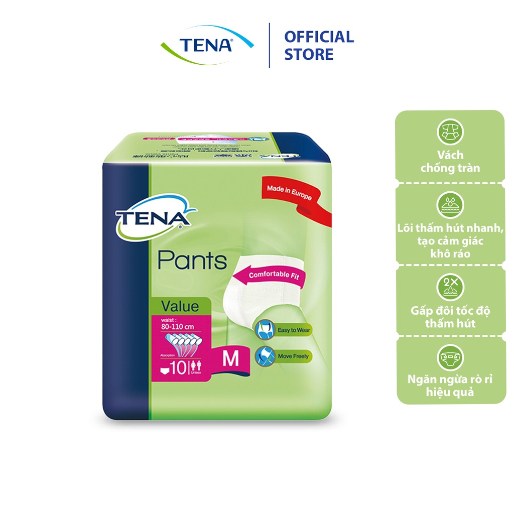 Tã quần người lớn TENA Value pants siêu thấm, chống tràn cao cấp - Tặng 3 gói giấy rút