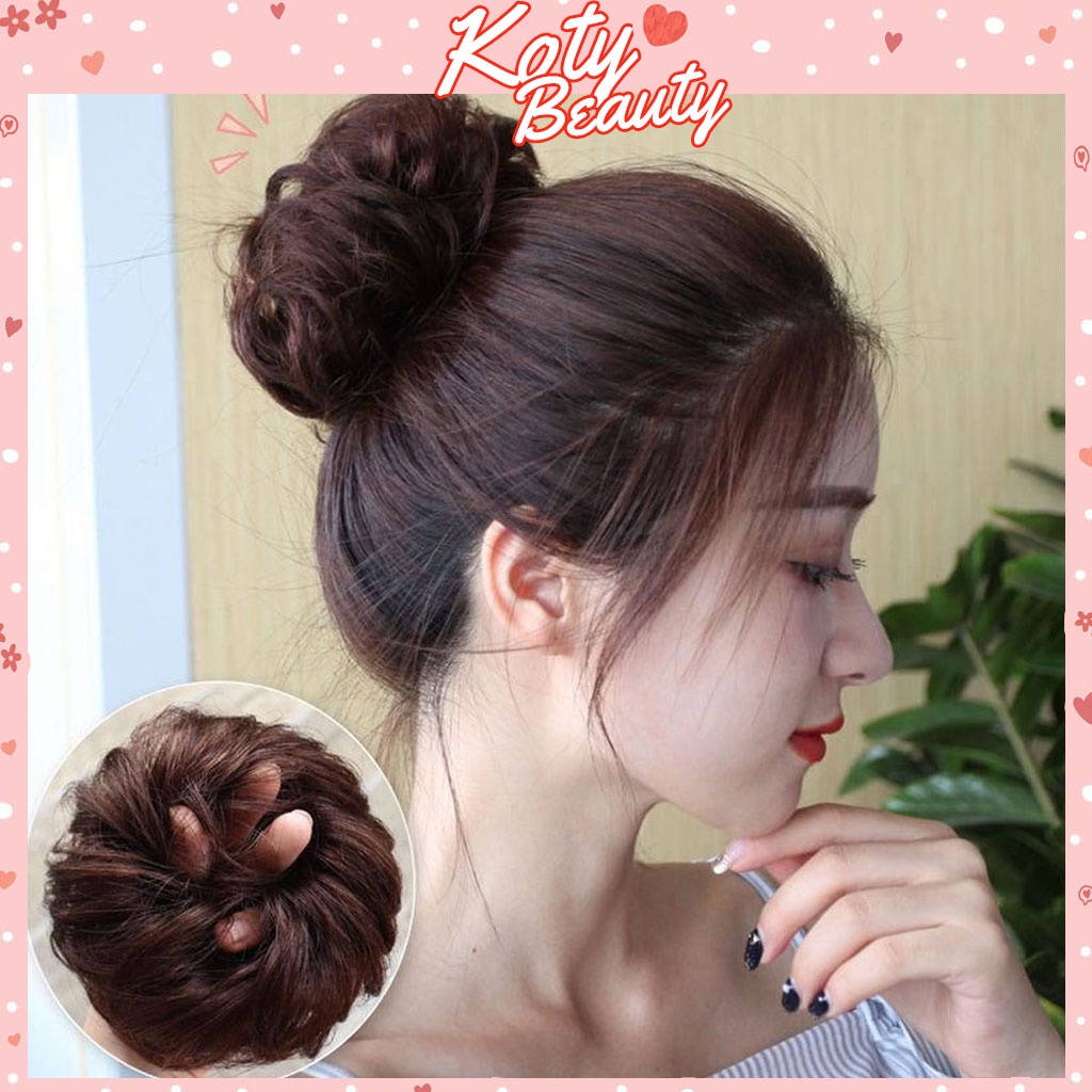 Tóc giả búi rối tròn cho nữ shop Koty, tóc búi giả xoăn trung niên dễ dàng sử dụng TG7