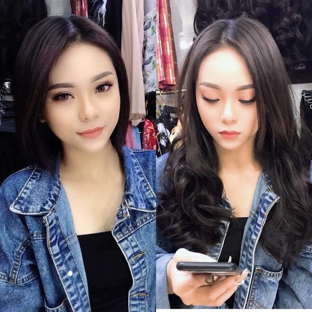 Tóc giả nữ kẹp ❤️dải ngang 6 phím❤️ Tóc giả kẹp xoăn 45cm