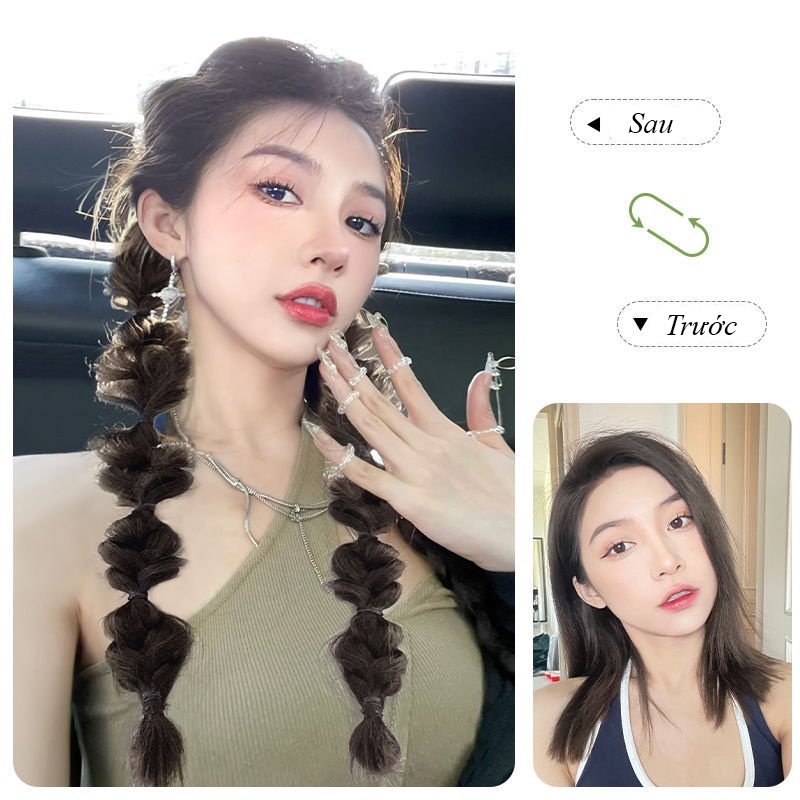 Tóc Giả Thắt Bím Đuôi Ngựa Bằng Sợi Bong Bóng Tự Nhiên Kiểu Dáng Ngọt Ngào-Tóc giả tết bím bong bóng dài 33cm