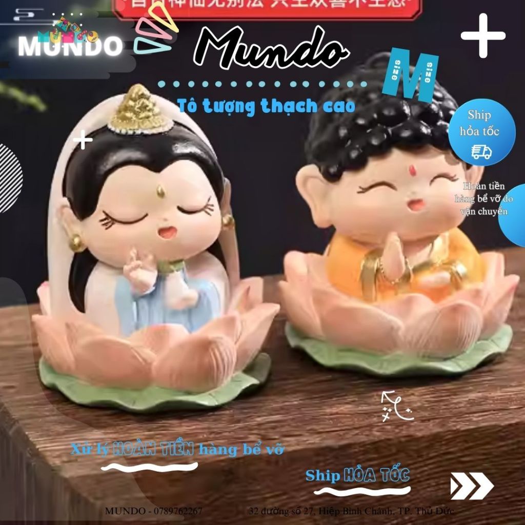 Tô Tượng Thạch Cao Như Lai, Quan Âm, Nguyệt Lão, Thần Tài Size M, Tượng Thạch Cao Phong Thủy May Mắn MUNDO