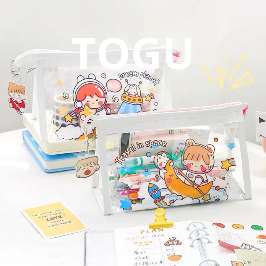 Túi đựng bút trong suốt TOGU hộp bút dễ thương túi đựng đồ dùng cá nhân hình hoạt dễ thương túi đựng đồ du lịch