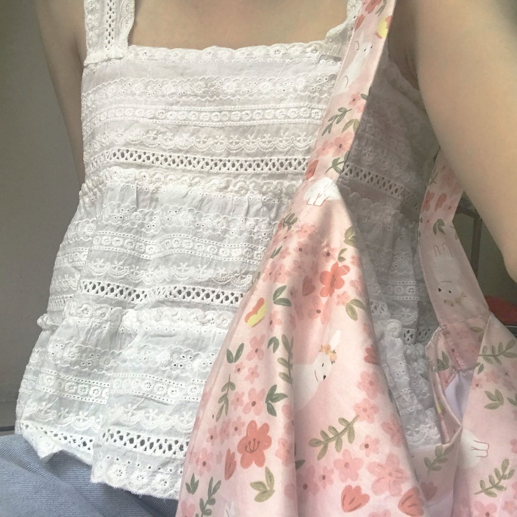 Túi đeo chéo tote, đeo vai, túi xách hoa nhí bigsize floral cỡ lớn màu hồng đáng yêu lolita - Baby Pastel