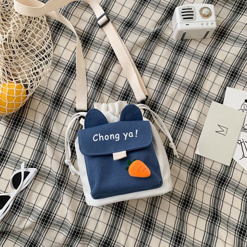 Túi đeo chéo vải canvas phong cách Nhật Bản xinh xắn thời trang dành cho nữ