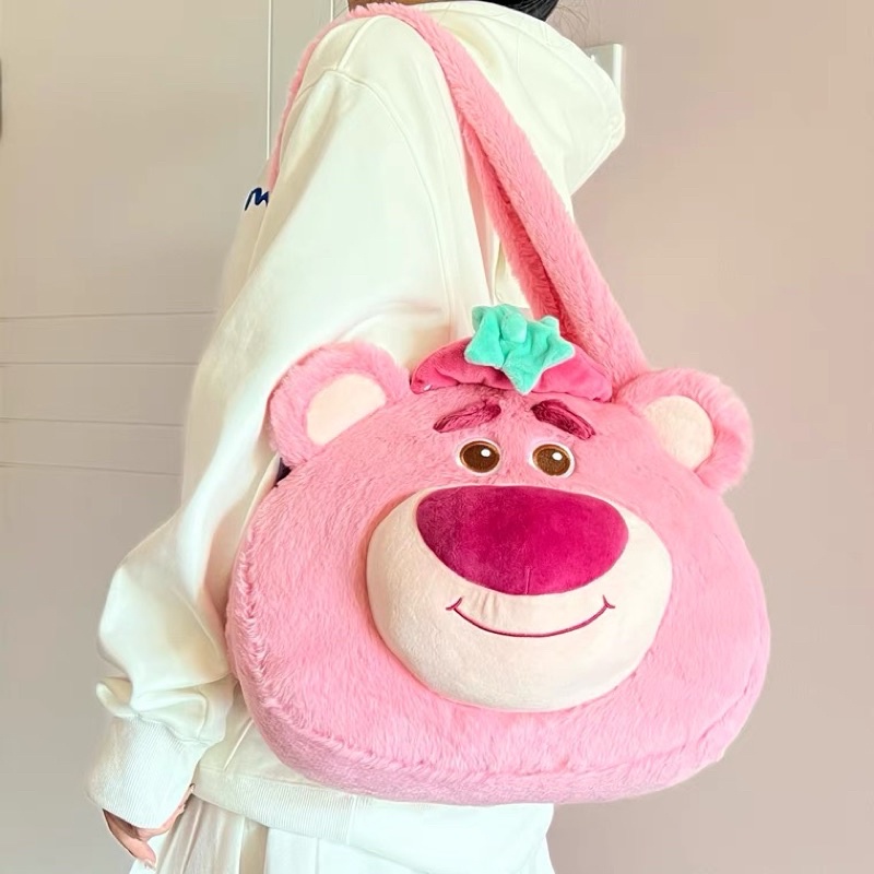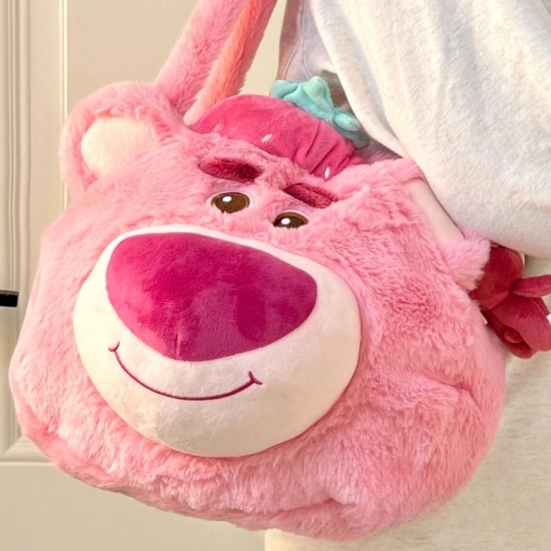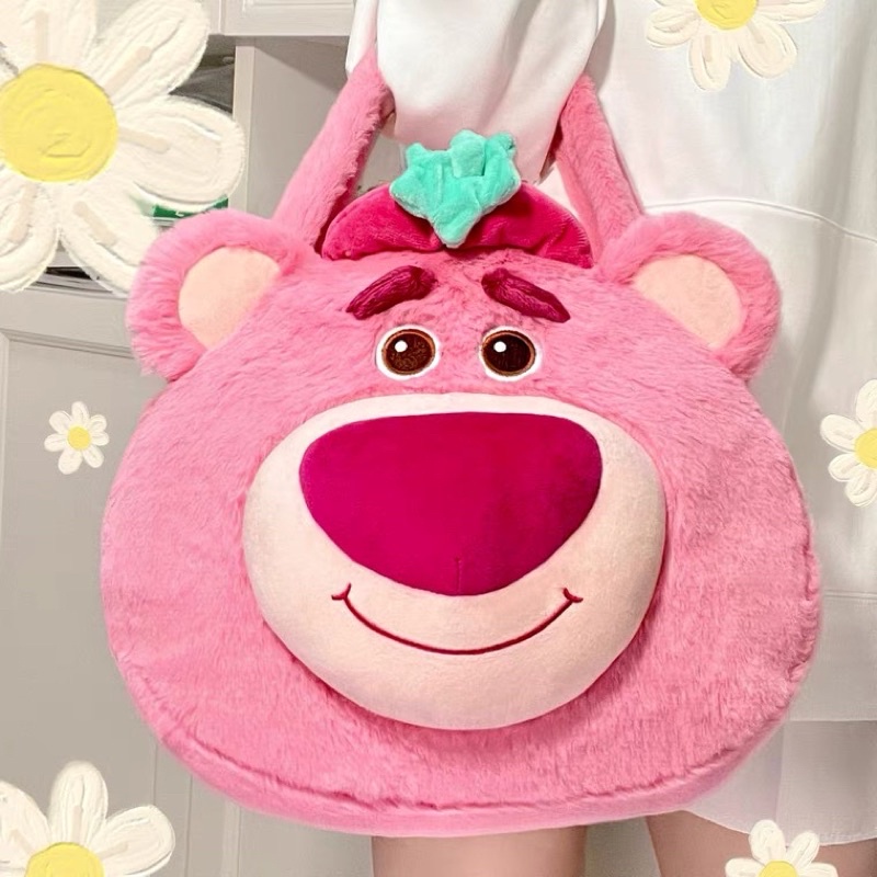 Túi đeo tote 3D Gấu dâu Lotso dễ thương đáng yêu bản màu Hồng