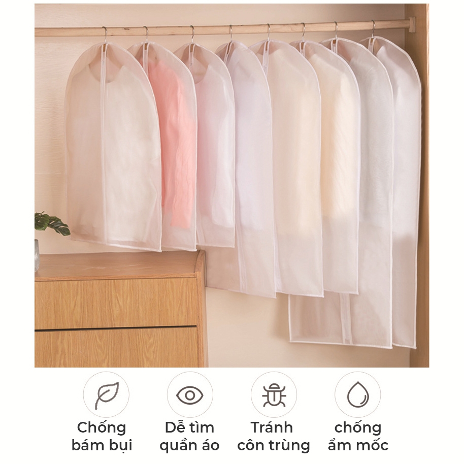 Túi bảo vệ quần áo chống bụi chống mốc treo tủ có khóa kéo kín