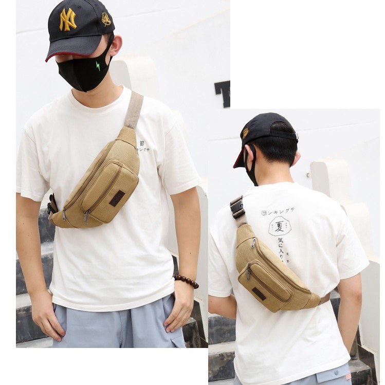 Túi bao tử, túi đeo chéo nam nữ vải Canvas Sport size 30cm Chi Tiết Sản Phẩm ✓ Túi bao tử có thiết kế đeo hông tiện dụng, dây đeo có khóa cài có thể điều chỉnh kích thước linh hoạt. ✓ Kết cấu nhiều ngăn giúp bạn có thể dễ dàng sắp xếp nhiều loại vật dụng: ví tiền, ch