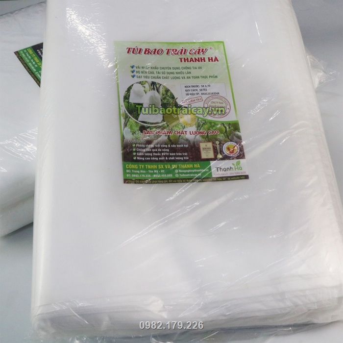 TÚI BAO TRÁI MÍT HÀNG CHẤT LƯỢNG BỀN ĐẸP - 25 TÚI Túi bao trái mít được sản xuất từ chất liệu vải không dệt nên rất bền, thoáng khí, không thấm nước, chống tia UV hiệu quả. Sử dụng túi giúp nâng cao năng suất, chất lượng trái mít, tăng thêm thu nhập cho người nông dân. THÔNG SỐ KỸ THUẬT Kích thước: Chiều rộng 50cm, chiều dài 70cm Chất liệu: Vải không dệt nhập khẩu Kiểu dáng: Túi dây rút Xuất xứ: Thanh Hà CÔNG DỤNG - Túi được sử dụng như một lớp áo bảo vệ giúp phòng chống sự phá hại của các côn trùng và chim thú gây hại như ruồi vàng, rệp, nhện đỏ, dơi,... gây hỏng trái, rụng trái, thiệt hại về sản lượng của cây. - Sử dụng túi hạn chế hiện tượng vỏ mít bị sần sùi, chấm đốm đen do gặp sương muối, giá rét. - Sản phẩm làm giảm tối đa dư lượng thuốc BVTV bám trên trái, tạo ra những trái mít sạch, an toàn, chất lượng tốt, an toàn cho người tiêu dùng. - Túi bao trái với chất liệu vải không dệt màu trắng, trái vẫn hấp thụ ánh sáng tốt, quang hợp dễ dàng, kích thích sự phát triển của trái mít non khi được bọc. - Túi có thành phần chống tia UV, độ bền cao, có thể tái sử dụng nhiều lần. HƯỚNG DẪN SỬ DỤNG Phun thuốc BVTV trước khi bao trái để diệt trừ sâu bệnh và trứng bám trên vỏ trái. Sau từ 1-2 ngày thuốc đã khô có thể bao trái, tiến hành bao nhanh để đạt hiệu quả tốt nhất. Luồn túi vào quả đã được 45 ngày tuổi, sau đó rút dây và kéo núm cao su để cố định.