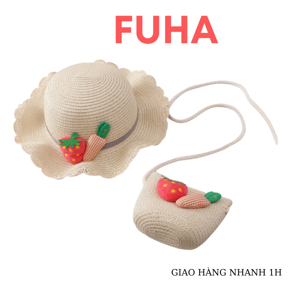 Túi cói đi biển cho trẻ em FUHA, túi đeo chéo phong cách thời trang mùa hè dành cho bé gái