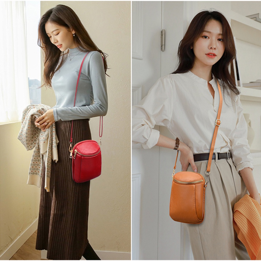 Túi Da Đeo Chéo Đựng Điện Thoại Thiết Kế Hai Ngăn Có Khóa Kéo Phong Cách Hàn Quốc 2023