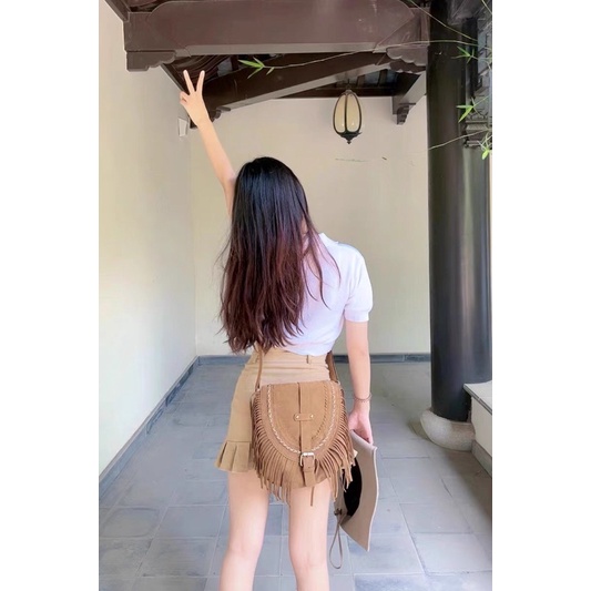 Túi da lộn tua rua local brand chất đẹp. Kèm ảnh thật