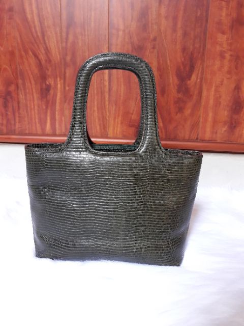 Túi xách tay da kỳ nhông, màu xanh rêu đậm, size 23x18x10. Màu khá đẹp và mới. Được làm từ chất da thật nên túi sử dụng cực kỳ bền.