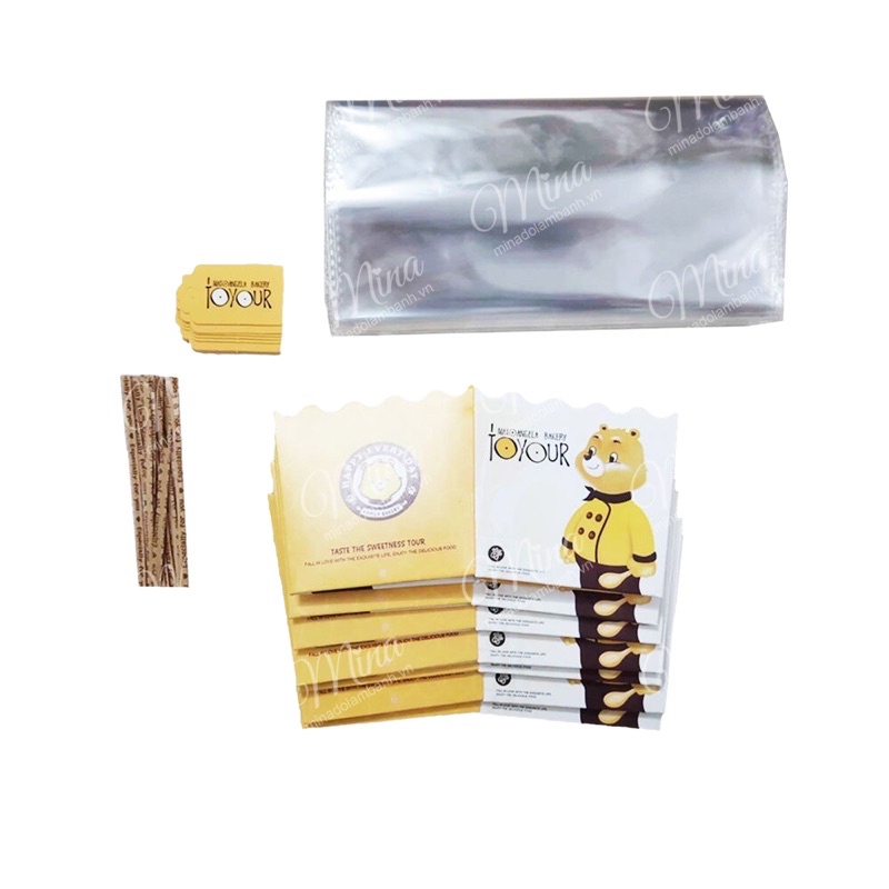 Túi GẤU VÀNG kèm đáy đựng bánh quy, bánh mì,… 10 chiếc