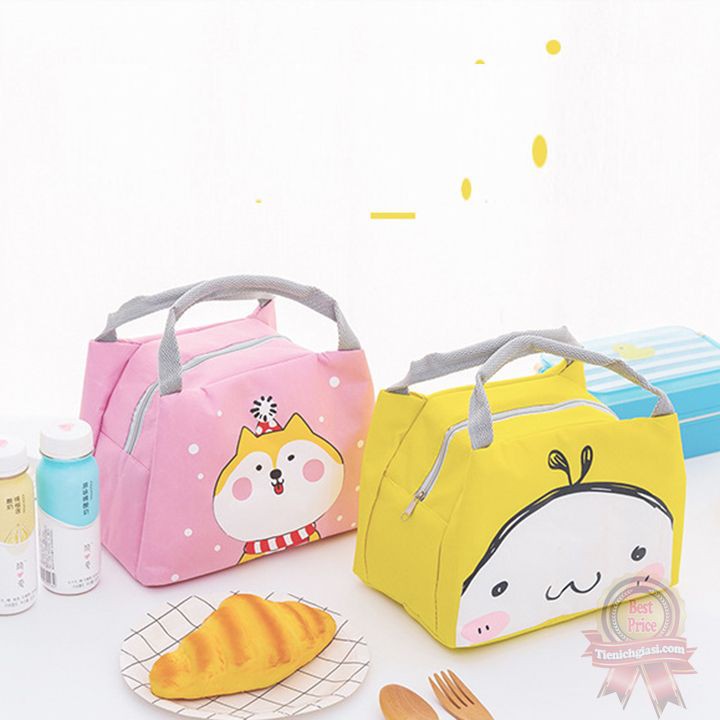 Túi giữ nhiệt đựng đồ ăn hộp cơm bình chai nước hình thú dễ thương có khóa tiện lợi cho học sinh viên dân văn phòng