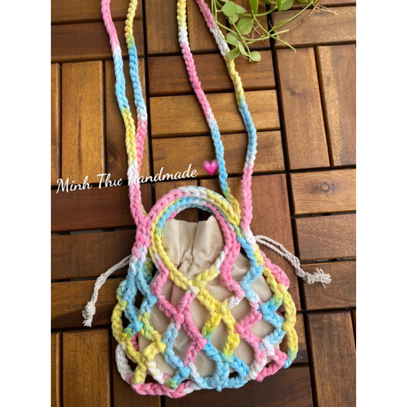 Túi lưới đan móc thủ công mini note crochet handmade hoạ tiết màu loang