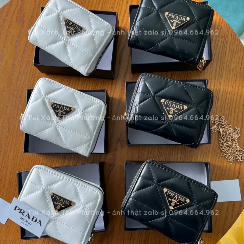 Túi mini đeo chéo, ví trần ô kèm dây xích đeo chéo đính mác tam giác nhiều ngăn tiện dụng siêu sang cho nữ