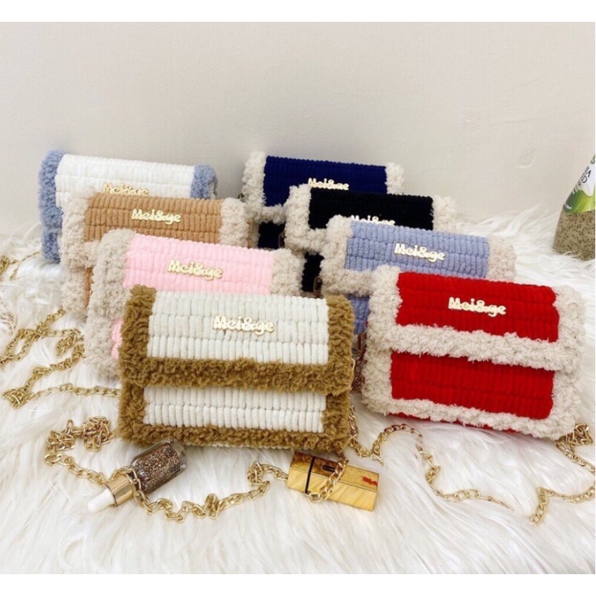 Túi tự đan len phối màu, Tự làm túi messenger thủ công-trọn bộ phụ kiện dệt kim