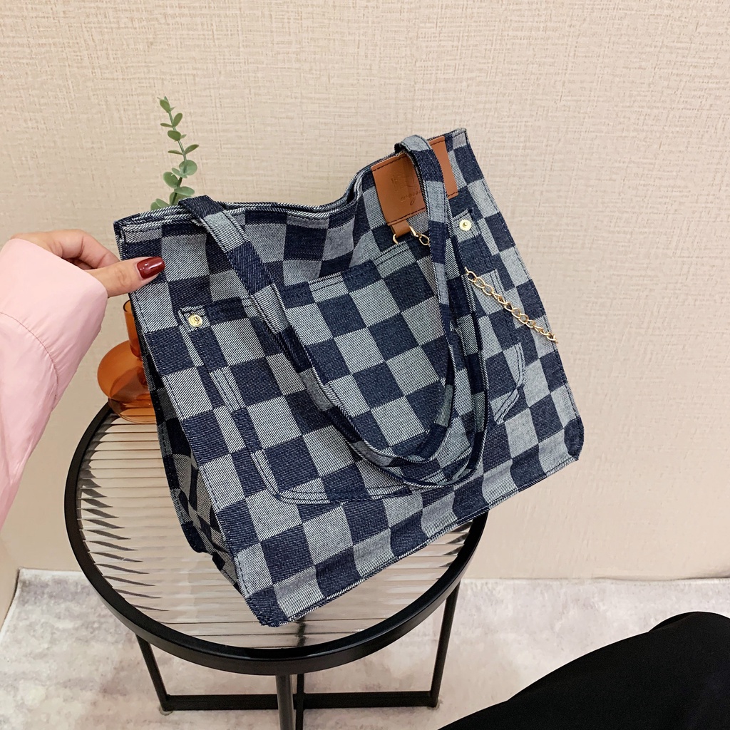 Túi tote đeo chéo nữ vải jean phong cách Ulzzang Hàn Quốc đi chơi, đi làm kẻ caro thời trang Túi tote với thiết kế hiện đại, kích thước lớn tiện dụng. Phù hợp cho các cô gái có phong cách cá tính, dễ thương. Chiếc túi thể hiện sự sành điệu với xu hướng thời trang trẻ