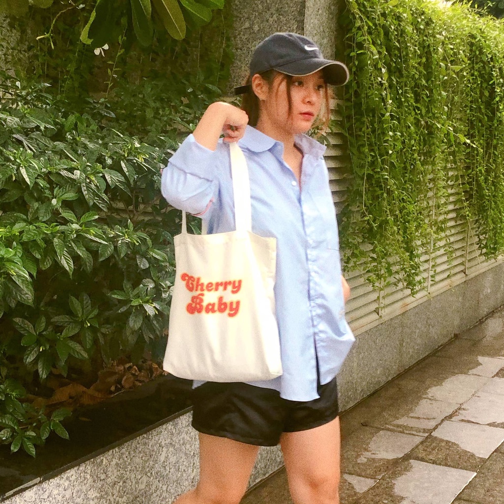 ❤️ TÚI TOTE CHERRY BABY VINTAGE STYLE❤️ Kích thước: Ngang 33*dài 35 Đặc tính sản phẩm: - Túi Tote (túi canvas) không có dây kéo, vừa A4 - Chất liệu: Vải canvas mộc dày dặn, phong cách trẻ trung, hiện đại - Màu sắc: trắng tinh - Style: Korea - Ứng dụng: Đi học, đi chơi, đi làm, dạo phố... ❤️ LÝ DO BẠN NÊN TẬU NGAY CHO MÌNH CHIẾC TÚI TOTE❤️ - Tính ứng dụng cao, phù hợp với nhiều style khác nhau. - Túi Tote vô cùng tiện dụng bởi kích thước to bản, chứa đựng được mọi thứ bạn cần như máy tính, sách vở, tài liệu,... - Chỉ cần kết hợp chiếc túi tote ưng ý với một outfit đơn sắc là những bức hình sống ảo của bạn sẽ trông sẽ chất lừ và rất lung linh. Cam Kết: - Hình thật sản phẩm thật shop tự chụp. - Túi may chắc chắn, dày dặn, đẹp mắt. - Giặt bằng máy hay giặt tay đều được.