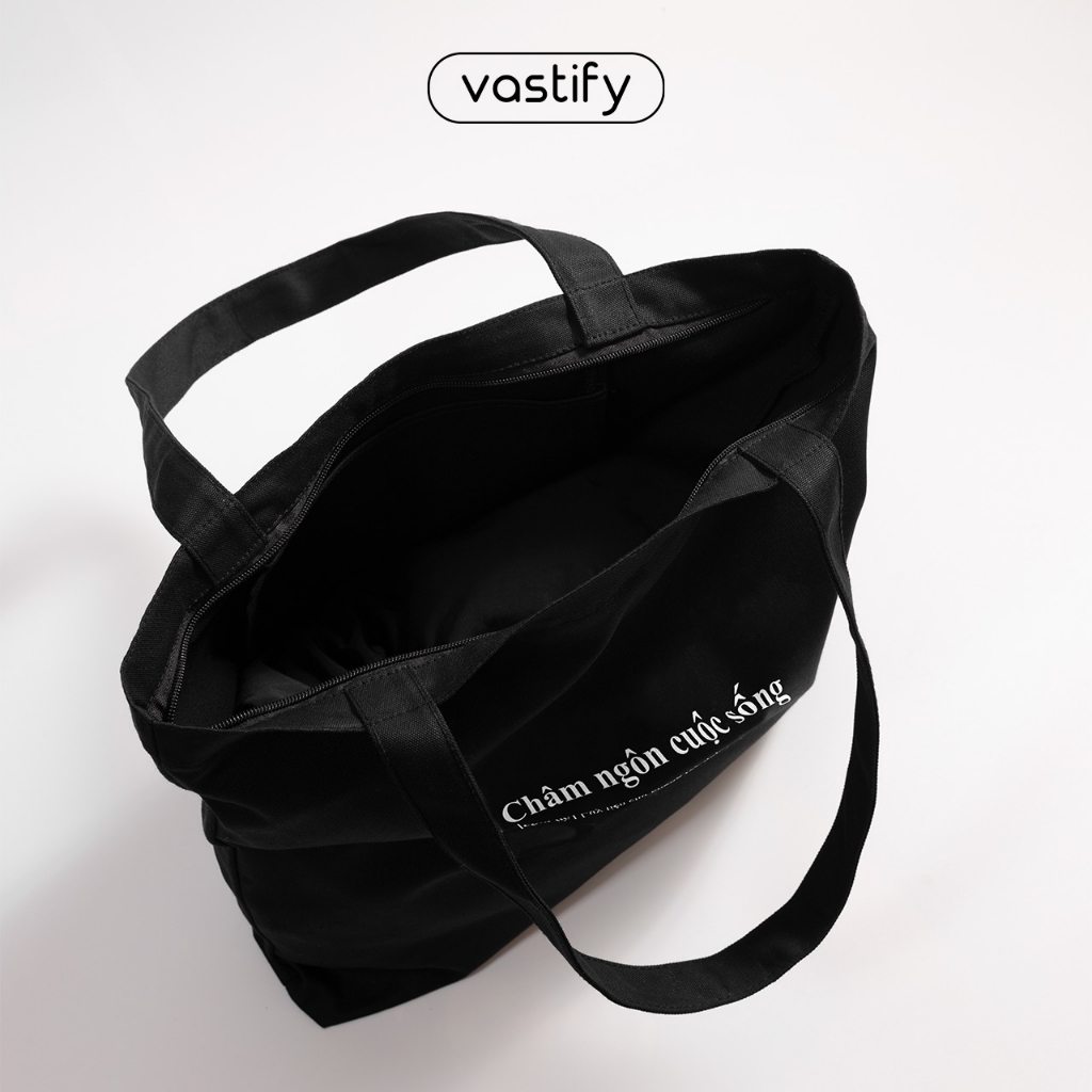 Túi tote vải canvas túi đeo vai đi học đi chơi Vastify Q008 có ngăn phụ có khóa kéo miệng thời trang phong cách Hàn Quốc