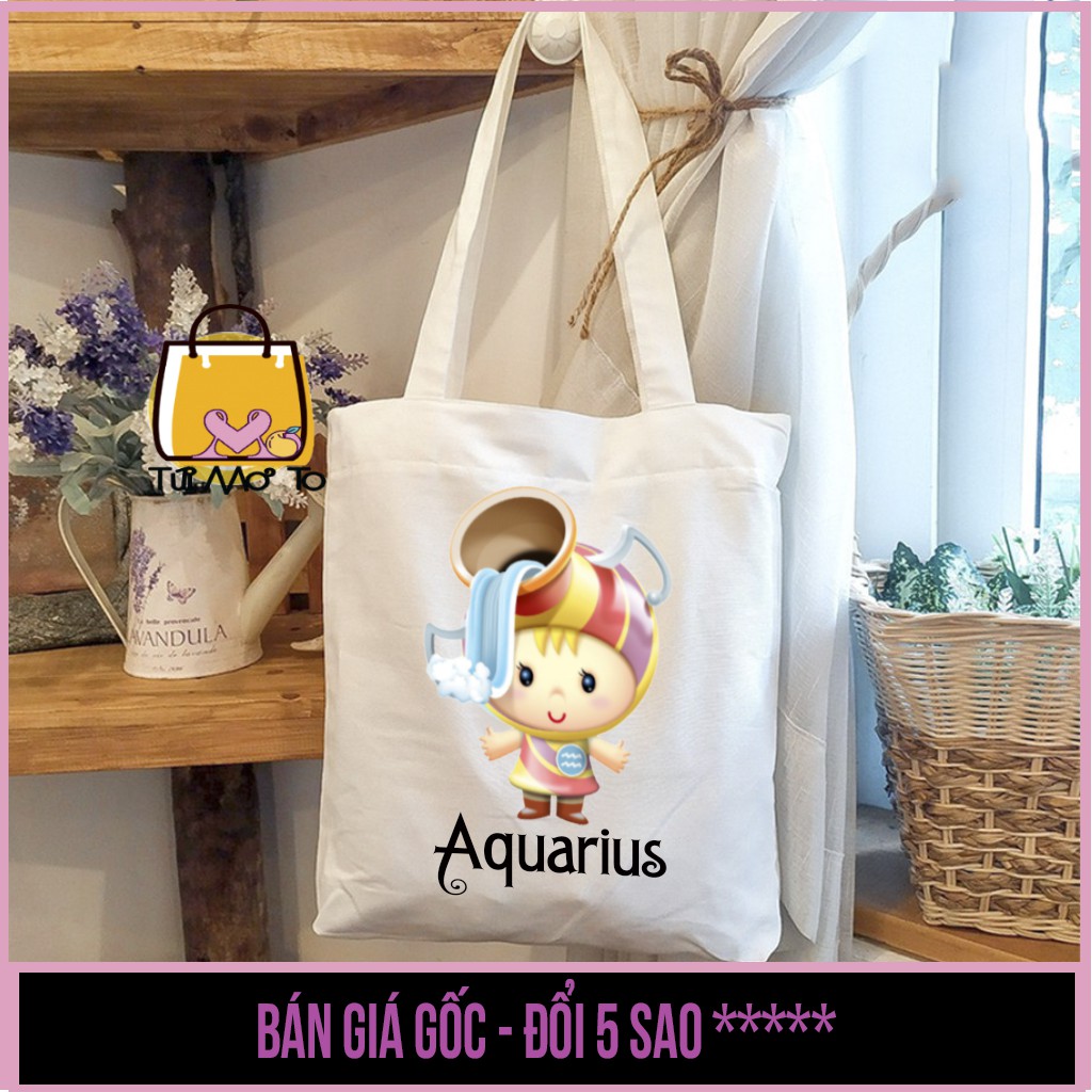 Túi tote VUÔNG 12 cung HOÀNG ĐẠO- Túi canvas - Túi Vải có khóa kéo - Túi Mơ To store