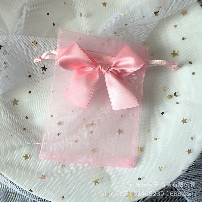 Túi voan dây rút đính nơ đựng quà, đựng kẹo, đồ trang sức