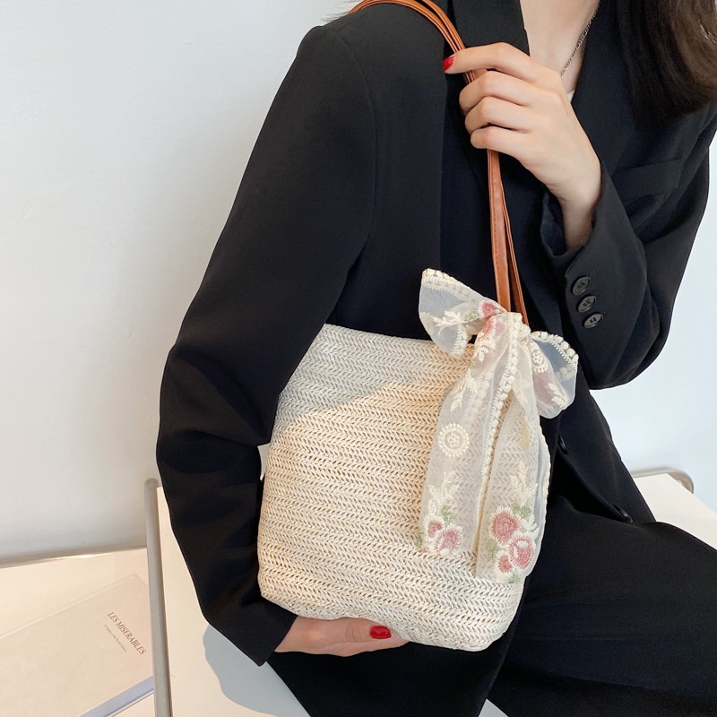 Tên sản phẩm: Túi cói kiểu dáng công sở vintage Kích thước: Dài: 25cm - Rộng: 27cm - Dày: 10cm - Dây túi: 27cm Chất liệu: Cói, có lớp lót. Nút bấm gài túi xách Ngoài những chiếc túi da công sở quen thuộc thì với chất liệu cói thân thiện với môi trường cũng rất được yê