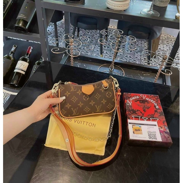 Túi xách kẹp nách in hoạ tiết hoa lv kèm dây đeo chéo size 18cm ảnh thật