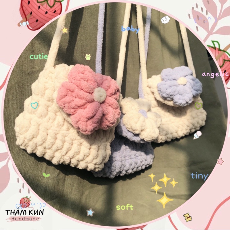 túi len nhung đũa bông hoa 🌺 túi có nắp, dễ dàng mở lấy đồ, có dây dài đeo qua người, bông hoa to chà bá lửa lunnnn phù hợp với mọi lứa tuổi