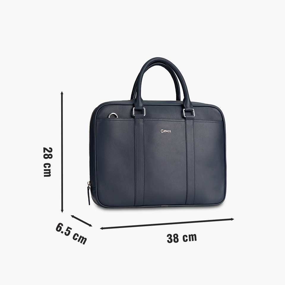 Túi Xách Nam Cặp Da Cao Cấp GENCE GCE18 Da Bò Mềm Màu Xanh Navy Có Dây Đeo Vai