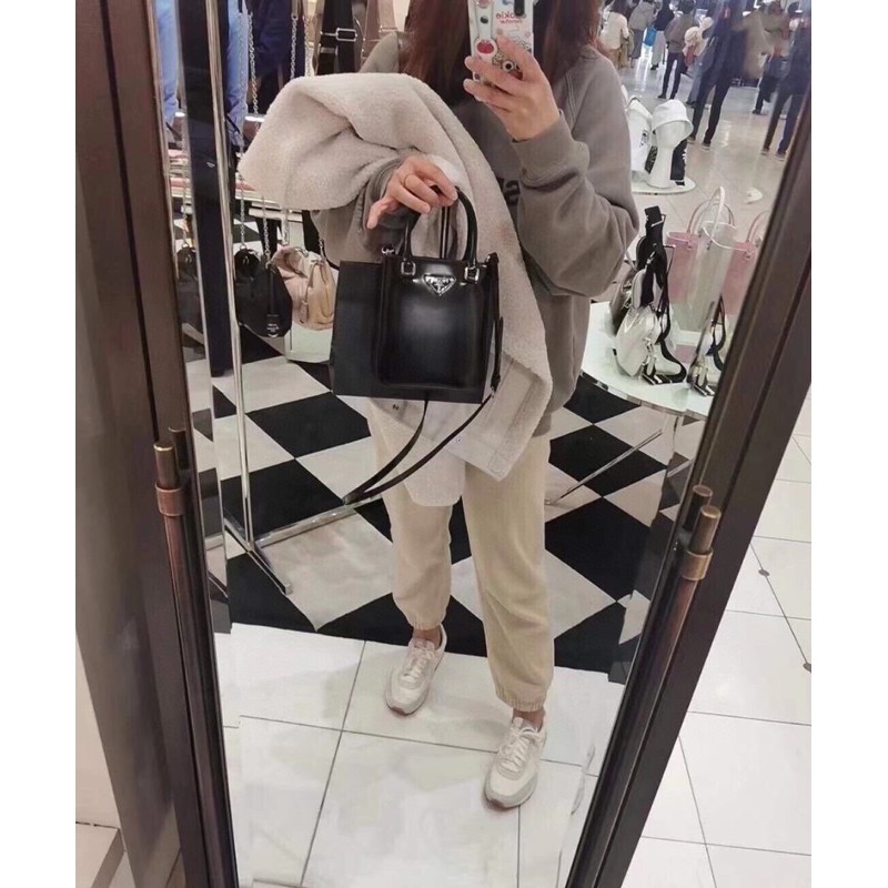Túi xách tay nữ dáng dài có dây đeo tháo rời tuỳ chỉnh da trơn prada