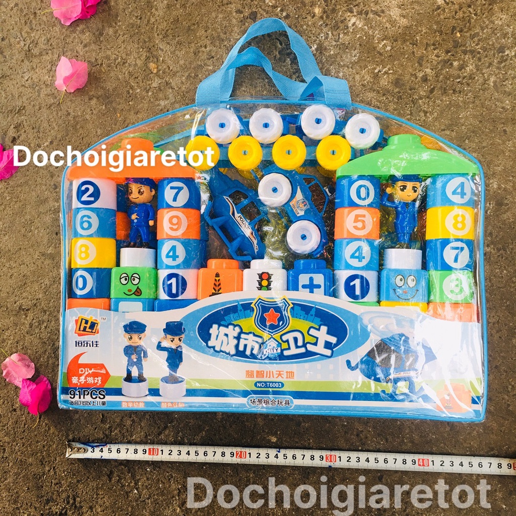Túi xếp hình cảnh sát 91pcs, đồ chơi lắp ráp xếp hình có ô tô,máy bay cho bé sáng tạo vừa học vừa chơi