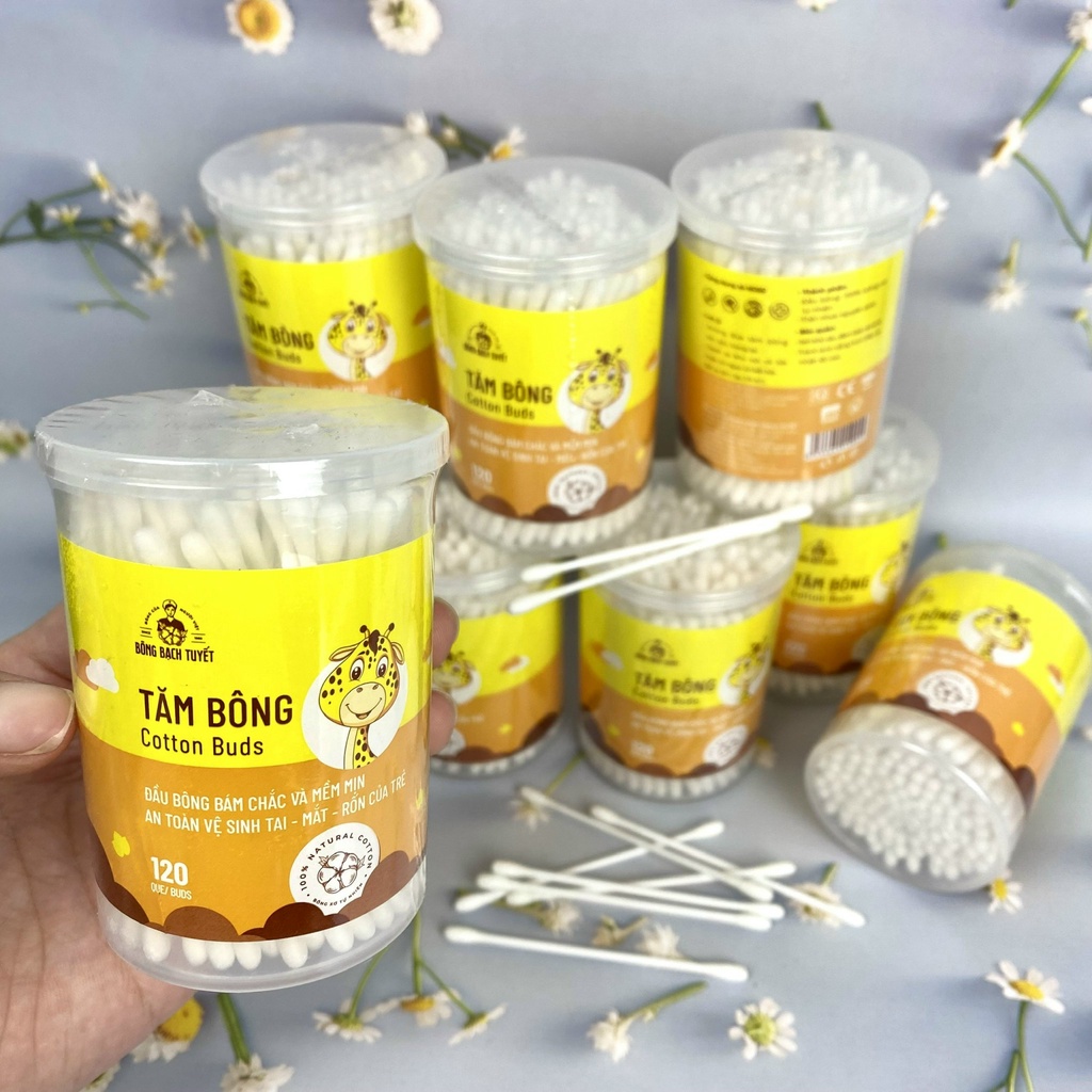 Tăm Bông Cho Bé 120 QUE HỘP TRÒN XOAY COTTON BUDS chính hãng BÔNG BẠCH TUYẾT