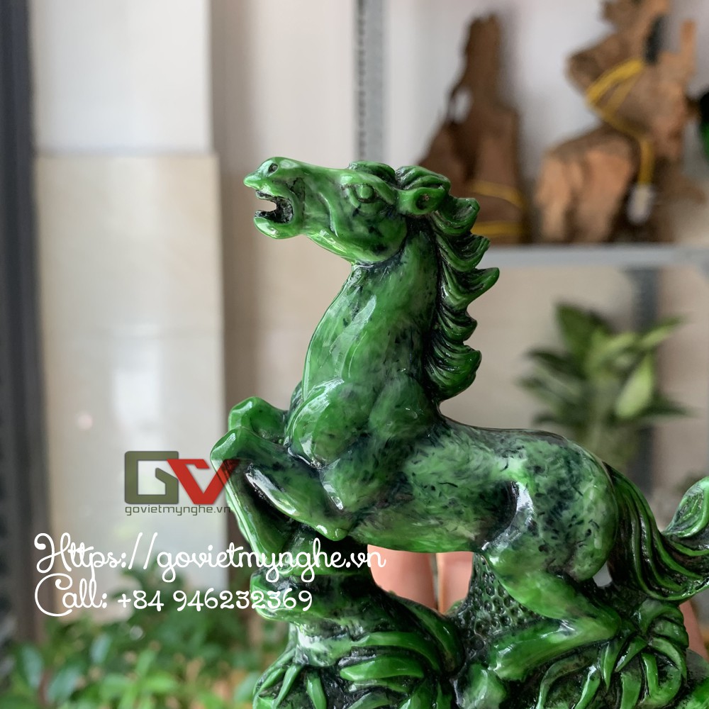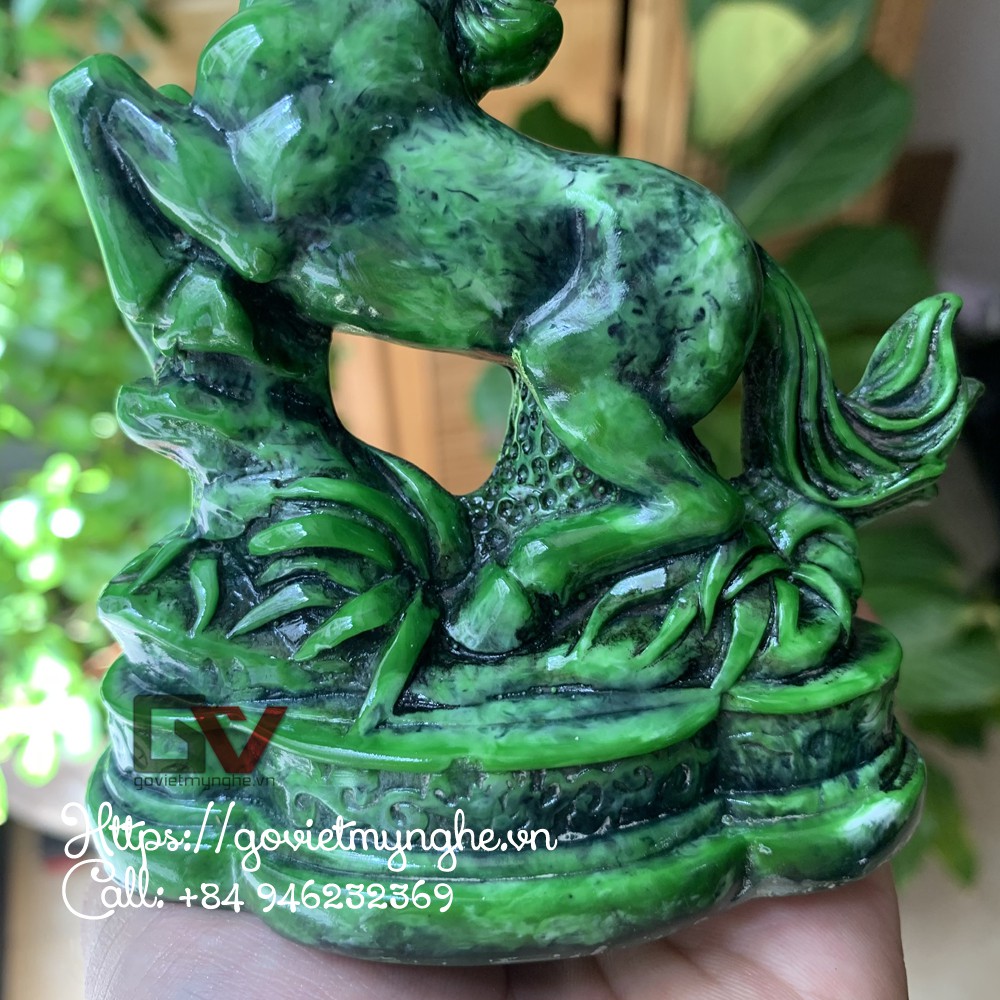 Tượng đá con ngựa trang trí phong thủy bàn làm việc phong thủy phòng khách - Xanh Lục Bích - 12cm