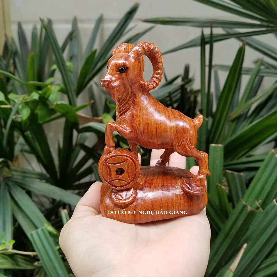 Tên sản phẩm: Linh vật tượng con dê gỗ hương cao 12 cm Kích thước: cao 12 ngang 7,5 sâu 5,5 cm Chất liệu: Gỗ Hương liền khối Sản xuất tại: Việt Nam --------------------------------------------------------------------------- Dê:Với thuyết 12 con giáp thì Dê là con giáp