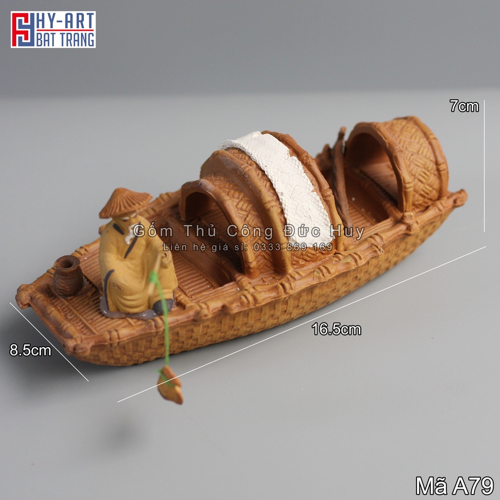 Tượng gốm ông già ngồi thuyền câu cá trang trí hòn non bộ chậu cây bonsai