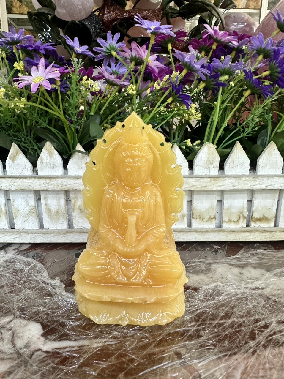 Tượng Phật Bà Quan Âm ngồi đài sen 2 mặt đá ngọc hoàng long