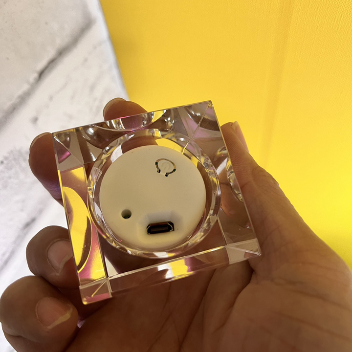 - Phía dưới đế có nút ấn có đèn led đổi màu sáng lên - 1 lần ấn là 1 lần đèn led đổi màu khác nhau