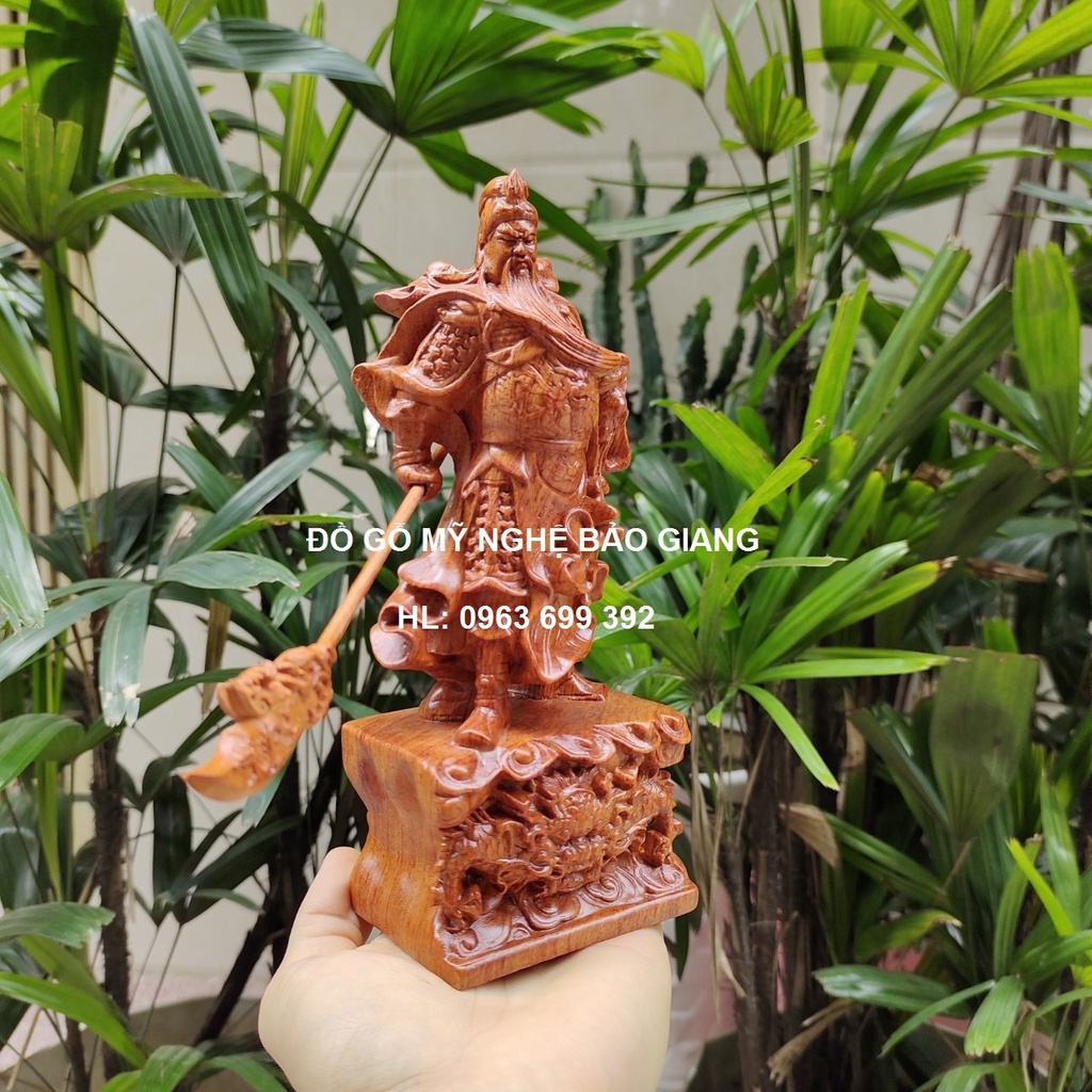Thông tin sản phẩm: Tượng quan công quan vân trường gỗ hương cao 20 cm đế rồng Kích thước: Cao 20 ngang 8 sâu 5 cm Chất liệu: Gỗ hương nguyên khối (gỗ lõi vân đẹp) Sản xuất tại: Việt Nam Sản phẩm do nghệ nhân đục chất lượng tinh xảo, mặt đẹp, có thần thái oai phong. -------------------------------------------------------------------------------- Thông tin liên hệ: Đồ gỗ mỹ nghệ Bảo Giang Địa chỉ: Số nhà 2, ngõ 22, Tân Xuân, Xuân Đỉnh, Bắc Từ Liêm, Hà Nội