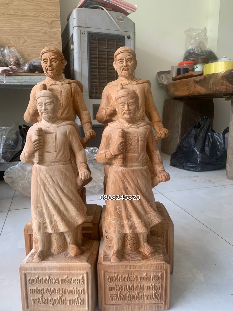 _ Tượng trần quốc tuấn được làm bằng chất liệu gỗ ngọc am liền khối tự nhiên 100% _ Kt cao 40×13×11cm _ Tượng chạm khắc gọt tỉa vô cùng tỉ mỉ ,tinh sảo kỳ công .Đi hầu hết tất cả mọi chi tiết góc ngách nội dung hoa văn của tượng đều được gọt tỉa chỉnh sửa sắc nét hoàn toàn bằng tay thủ công .Tượng được làm và hoàn thiện do bàn tay khối óc tài hoa .Từ những người thợ giàu kinh nghiệm cũng như tay nghề cao trong làng nghề truyền thống . Giá sản phẩm trên Tiki đã bao gồm thuế theo luật hiện hành. Bên cạnh đó, tuỳ vào loại sản phẩm, hình thức và địa chỉ giao hàng mà có thể phát sinh thêm chi phí khác như phí vận chuyển, phụ phí hàng cồng kềnh, thuế nhập khẩu (đối với đơn hàng giao từ nước ngoài có giá trị trên 1 triệu đồng).....