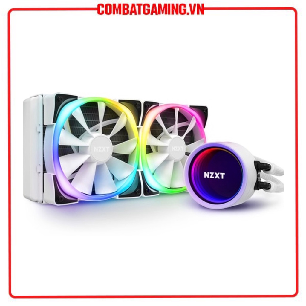 Tản Nhiệt Nước NZXT Kraken X53 RGB White 240mm -Socket tương thích: LGA 1700, 1200, 1151, 1150, 1155, 1156, 1366, 2011, 2011-3, 2066 -AMD Socket AM5, AM4, sTRX4*, TR4* (*Threadripper bracket not included) -Kích thước: Đường kính: 80mm; H: 55mm -Chất liệu: Đồng, nhựa -Tốc độ bơm: 800 – 2,800 + 300 RPM -Kích thước bộ tản nhiệt: Kích thước: 123 x 275 x 30mm (Nhôm) -Quạt: Tốc độ: 500 - 1,500 + 300 RPM -Luồng gió quạt: 17.48 - 52.44 CFM -Áp suất gió: 0.15 – 1.35mm-H2O -Độ ồn: 22-33dBA -Bảo hành chính hãng 24 tháng 𝐂𝐨𝐦𝐛𝐚𝐭 𝐏𝐂 𝐆𝐚𝐦𝐢𝐧𝐠 𝐆𝐞𝐚𝐫 Website : https://combatgaming.vn Vị trí Showroom : https://bit.ly/31hU6Rc Địa chỉ : 35 Lê Văn Phẩm - Phường 6 - Tp Mỹ Tho - Tiền Giang Call : 0907339937 Mr Cường #nzxt #kraken #x53 #rgb #white #240mm