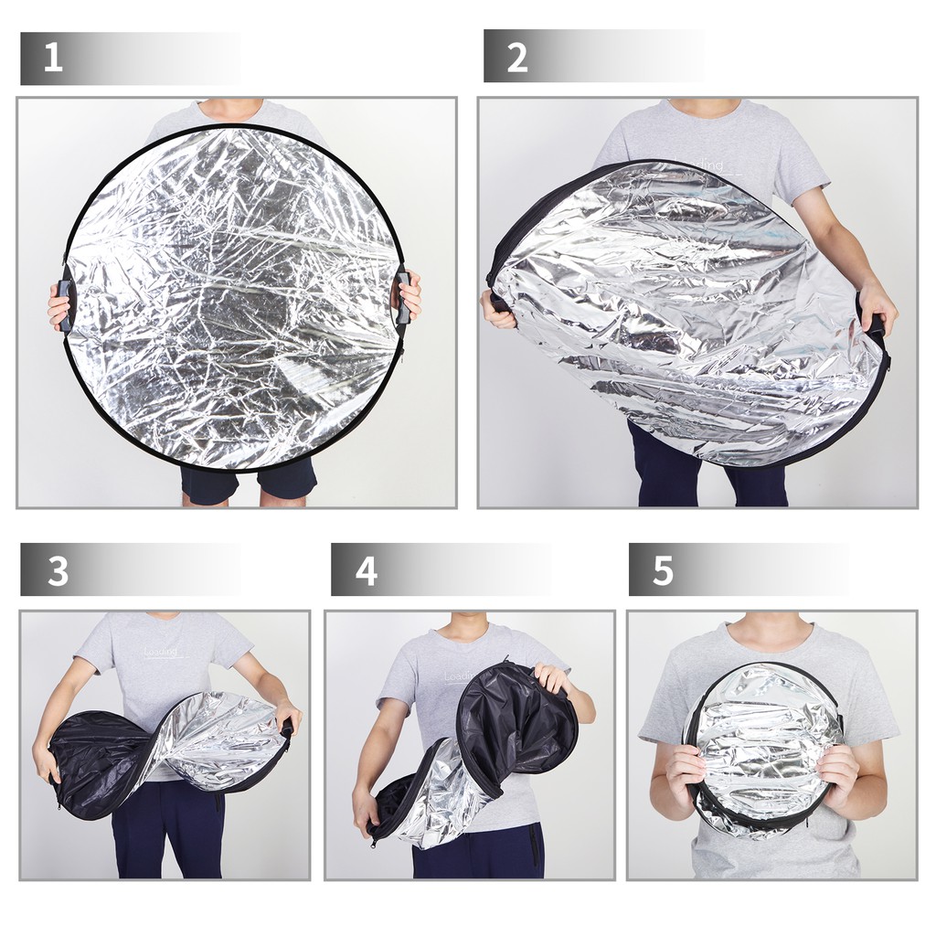 Thời gian giao hàng dự kiến cho sản phẩm này là từ 7-9 ngày Tấm hắt sáng 5 trong 1 cho chụp ảnh trong studio Kích thước mở ra: 32 × 32 inch Kích thước gấp: 10 × 10 inch Tấm hắt sáng 5 trong 1 rất linh hoạt trong lĩnh vực này và trong studio, cung cấp các chi t