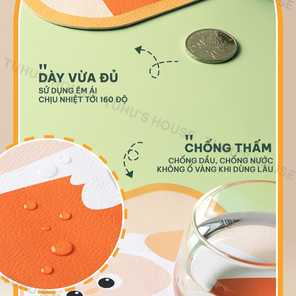 Tấm lót bàn ăn bằng da PU cách nhiệt, tấm thảm da trải bàn ăn hoạt hình chống trơn trượt – TUHUHOUSE