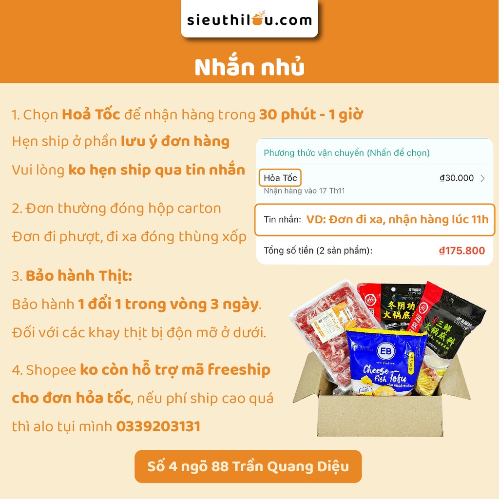 Viên Chiên Vỉa Hè Thành phần: + Cá Viên: Được chế biến từ cá tươi, không chất bảo quản, an toàn cho sức khỏe, cá viên chứa hàm lượng protein cao, cung cấp đầy đủ chất dinh dưỡng cho cơ thể. + Bò Viên: Thịt Bò 85%, Tinh bột biến tính, Tỏi, Đường, Muối, Tiêu, Chất ổn định (E452i), Chất điều vị (E621),... nguyên liệu được lựa chọn kỹ lưỡng, an toàn cho sức khỏe, mang đến sự an tâm cho người dùng. + Viên hải sản rau củ: Thịt cá, mực, bạch tuộc, cà rốt và các loại rau củ quả khác… + Tôm Viên: Tôm (50%), thịt cá tra, bột khoai tây, bột năng, bột bắp, đường, muối, bột lòng trắng trứng, bột ngọt,... + Tôm định hình: Thịt Cá BaSa: 78%, Thịt Tôm: 5%, Tinh Bột Bắp, Bột Mì, Hương Tôm Tổng Hợp, Màu Thực Phẩm E124 và E110, Đường, Muối, Hành, Ớt, Tỏi, Tiêu, Chất Điều Vị E621, Chất Bảo Quản E221, Chất Ổn Định E452i. + Mực Xoắn: Mực Biển: 25% Cá Biển 65%,Tinh Bột Bắp, Bột Mì, Tinh Bột Đường , Muối, Gia Vị , Tỏi... Thông tin: NSX: Hồng Phúc, Ongon, Lacusia, Hồng Hà Xuất sứ: VN HSD: 12 tháng Trọng lượng: 500gr Quy cách: viên Đóng gói: hút chân không HDSD: sự dụng ngay sau khi rã đông Chế biến: thả lẩu, chiên, rán, nấu mì, nướng, sốt cà chua, hấp, quay lò vi sóng/lò nướng trong 1p. Cam kết: 💚 Luôn date mới 💚 Ship hỏa tốc 30p-1h 💚 Sản phẩm chất lượng cao 💚 Đóng gói chỉn chu & cẩn thận Siêu Thị Lẩu & Đồ Nướng - All About Hotpot & BBQ Web: sieuthilau.com Hotline: 033 920 3131 - 090 4648 198 Địa chỉ: soố 4 ngõ 88 Trần Quang Diệu *Shop Siêu Thị Lẩu đã bán hơn 3000 đơn hàng với đánh giá 5/5 sao đã bị KHÓA. Mong quý khách tiếp tục ủng hộ shop mới này. Cám ơn Quý Khách Hàng đã đồng hành và tin tưởng STL.