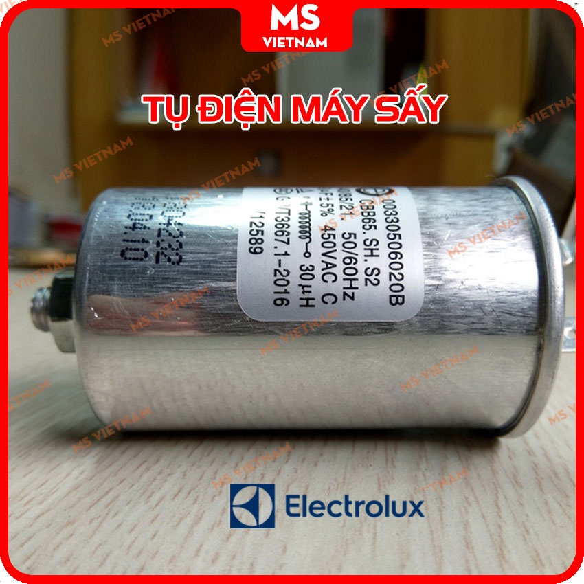 Tụ máy sấy Electrolux thay cho EDV6501, EDV6552, EDV7552 (6,5-7,5kg) - MS PLUS Tụ máy sấy Electrolux dùng để tích điện và giúp moto vượt qua lực cản lúc khởi động. Sau đó, tụ sẽ hết vai trò của nó. Chính vì hoạt động với công suất rất lớn như vậy nên tụ có nguy cơ hỏ